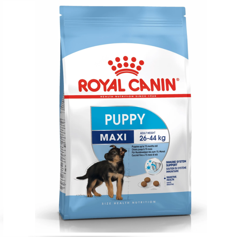 Les croquettes ROYAL CANIN® Maxi Puppy sont spécialement formulées pour répondre aux besoins nutritionnels des chiots de grandes races. Cette formule convient aux chiots de grandes races âgés de 2 à 15 mois qui devraient atteindre un poids adulte compris entre 26 et 44 kg.