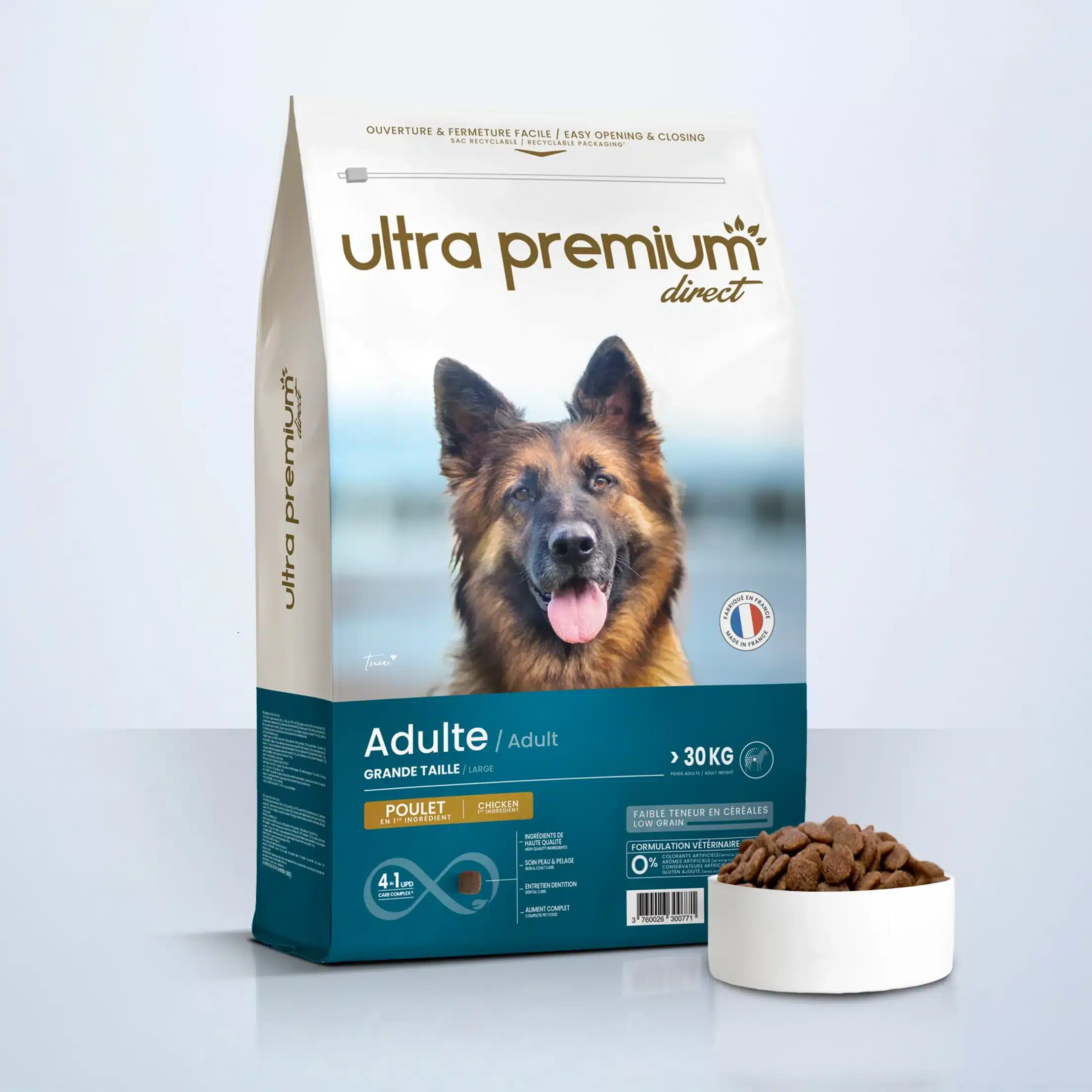 Nos croquettes Super Premium pour chiens de grande taille ont une dimension de 16mm adaptée aux chiens comme le berger allemand, le braque, le briard, le labrador ou encore le rottweiler. De part leur teneur en chondroïtine et en glucosamine, elles pourront aussi convenir aux très grands chiens comme le terre Neuve, le matin de naples ou le saint bernard. Ces chondroprotecteurs sauront soutenir leur système articulaire et leur assurer une mobilité parfaite ! De plus, les teneurs en matières grasses et en protéines de ces croquettes Low Grain sont finement calculées pour garantir un apport idéal à votre animal. Nos croquettes Super Premium sont conçues à partir d’une formule créée par une équipe de vétérinaires et nutritionnistes. Les ingrédients ont soigneusement été choisis parmi des matières premières de haute qualité. Cette alimentation à faible teneur en céréales permet une meilleure digestion car elle contient en grande majorité des ingrédients …
